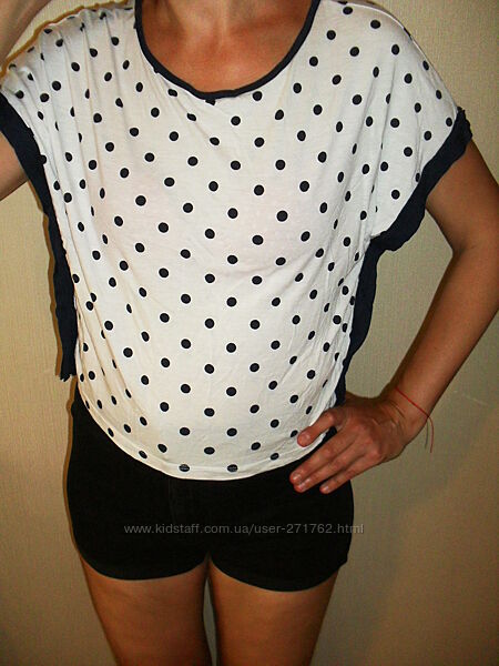 Футболка женская в горошек, размер xs указан, идет как свободная, материал трикотажДругие объявления продавца