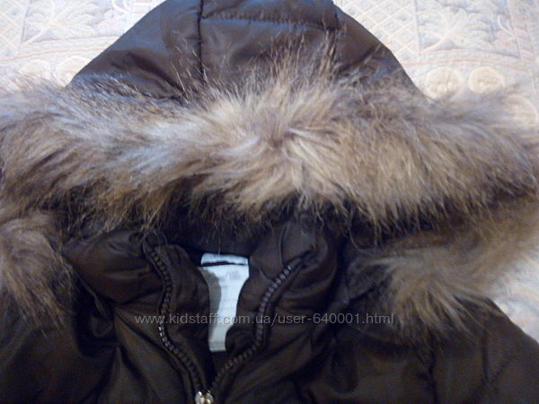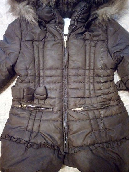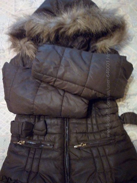 Куртка -пальто майорал зимняя красивого шоколадного цвета теплая, очень удачного фасона,благодаря своему удлиненному силуэту, легкому весу и "герметичности" Дополнительная "герметичность" при сохранении внутренего тепла и защиты от ветра и холода обеспечивается за счет тугих внутрених резинок на рукавах и защитной планки на замок-молнию.Два кармана на застежках-молниях