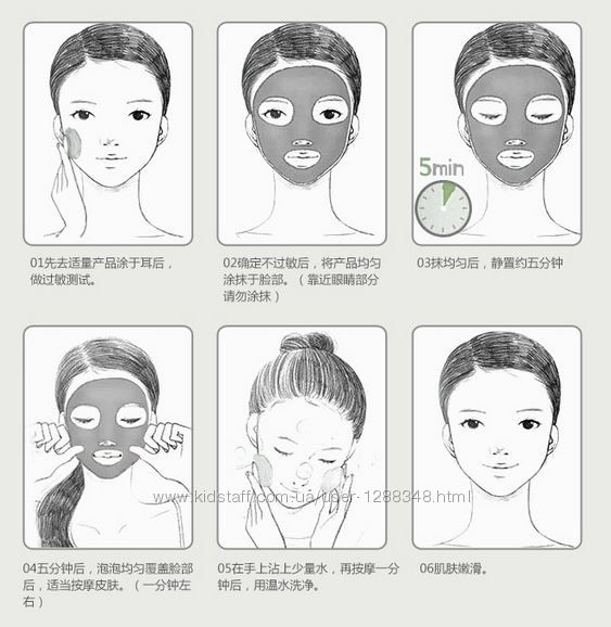 Помассируйте в течение 5 минут. Маска начнет пузыриться и увеличиваться. Затем смыть теплой водой. Нанесите увлажняющий крем.