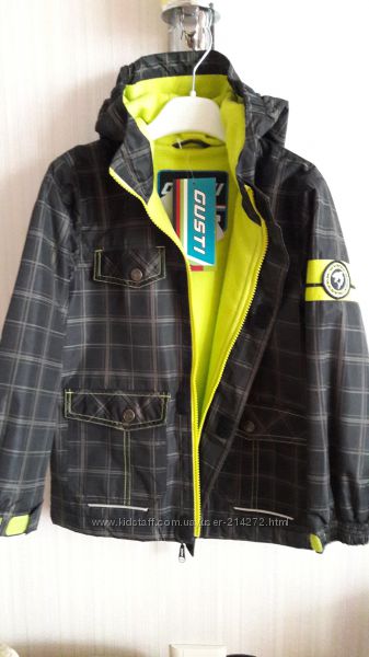 Канадская фирма. Тепленькая, не промокаемая (5000 мм) куртка-ветровка GUSTI BOUTIQUE рост 116 см на флисе, капюшон, светоотражатели, монжета регулируются липучкой. Карманы на липучке, застегивается на молнию и липучки. Очень классная.Производитель указывает