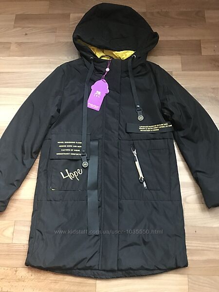 НОВИНКА ЭТОЙ ВЕСНЫ!!!Демисезонная куртка на девочку от бренда ADNS.Цвет чёрный,розовый.Размеры 140-164р.Наполнитель-тонкий слой холлофайбера.Капюшон с желтой вставкой отстёгивается и затягивается на кулиски.Модель прямого покроя,удлинённая как пальто.Впереди два кармана.Застежка на молнии и кнопку.Рукава с отворотом для регулировки длины и трикотажный манжет для тепла.