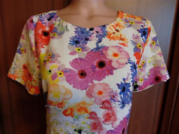 Яркое фирменное с красивым цветочным принтом. Свободного кроя, по спинке молния, по бокам маленькие разрезики, зад немного удлинен. Размер: 40/12 евро, наш 46 р., см. замеры.Цвет: белый, голубой, розовый, желтый, оранжевый.