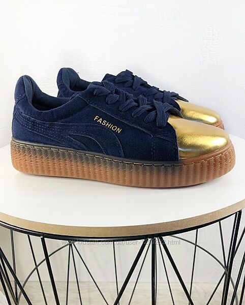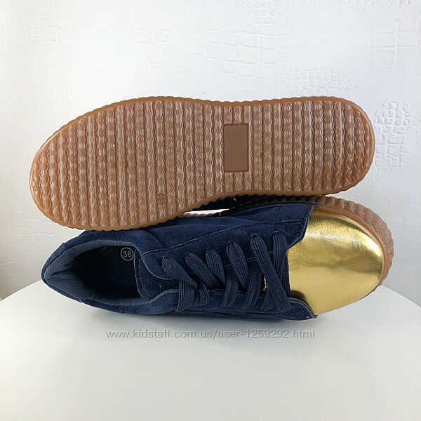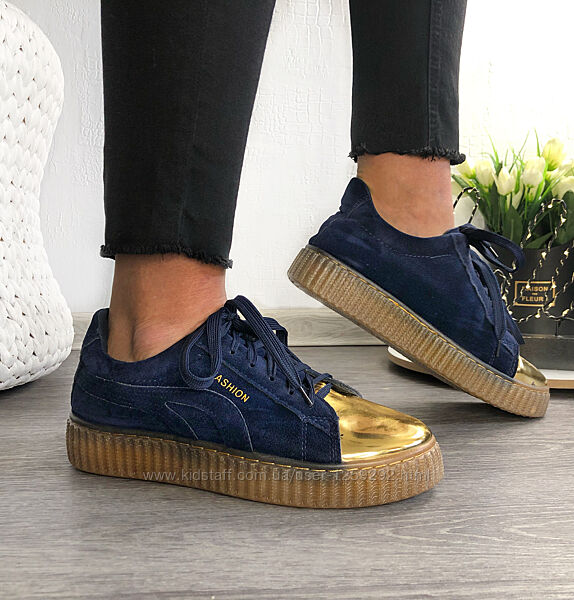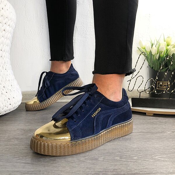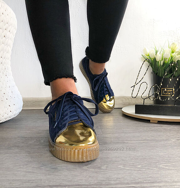 Подробное описание: Кеды криперы с золотым носком, замша темно-синие, р. 36-41