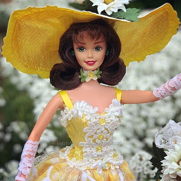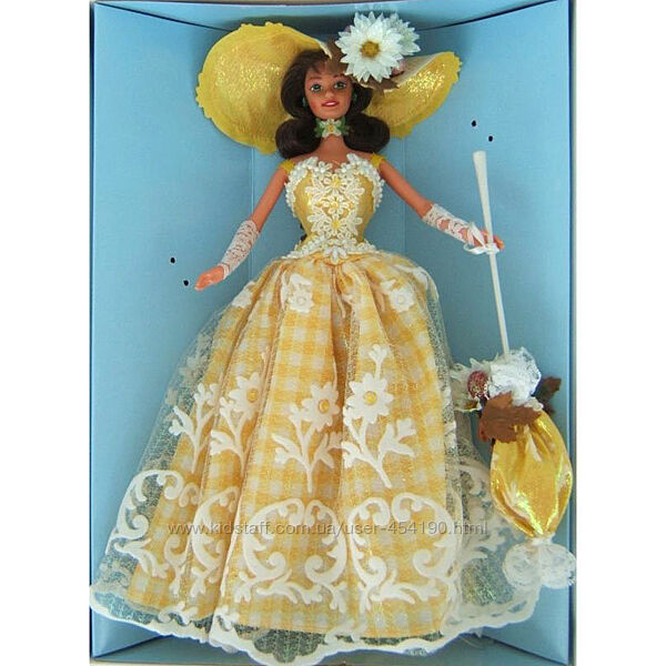 Кукла Барби Коллекционная Летнее великолепие 1996 Barbie Summer Splendor 15683Кукла Summer Splendor Barbie будет радовать ваш взгляд, как поле ромашек в самые ясные летние дни. Ее желто-белое платье с принтом в мелкую клетку дополняет мерцающая белая ссетка с кружевом. Ее красивое лицо защищено от летнего солнца роскошной шляпой, украшенной разноцветной клубникой и ромашками.