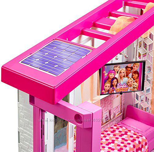 Описание Новый дом мечты Барби -это 3 этажа и 8 комнат, бассейн на террасе, с рабочим лифтом и более 70 аксессуаров. Гараж такой большой, что можно содержать даже трейлер!На первом этаже - кухня, столовая и гараж. На втором этаже - комната для гостей с диваном и столом, который превращается в кровать,а так же ванная комната . На третьем этаже есть спальня для Барби с красивым камином. Из спальни Барби по горке попадаем прямо в бассейн!