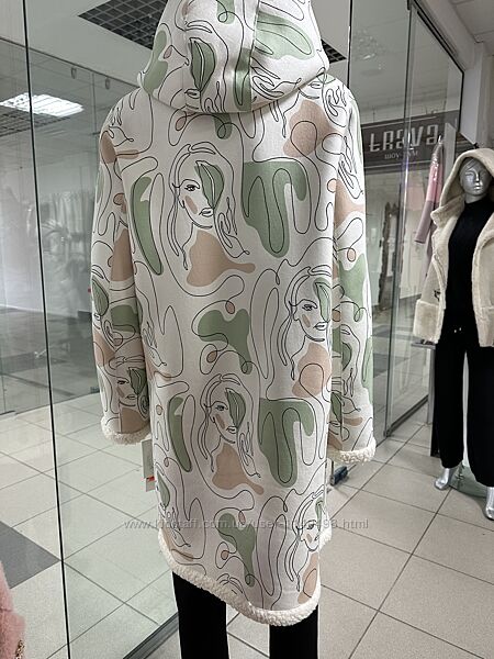 Шубка ниже колена, можно носить с поясом и без него. Два кармана, несъемный капюшон. Застежка молния.