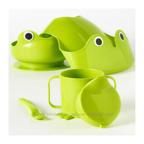 Набор посуды для кормления ребенка икеа Жабка (mata ikea), 4 шт., зеленый