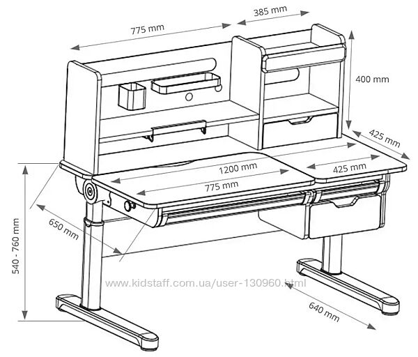 Стіл оснащений усіма необхідними відсіками та аксесуарами для дотримання порядку на столі та ефективних занять