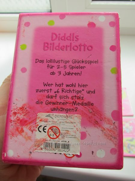Продам бу немецкое лото Diddls BilderlottoВозраст 3+ Количество игроков - 2-5 чел. Состояние - бу, но идеальное. Немножко надорвана коробка Все карточки в наличии. Инструкция есть. Размер маленькой карточки - 4*4см Размер большой карточки - 8,5*12,5см