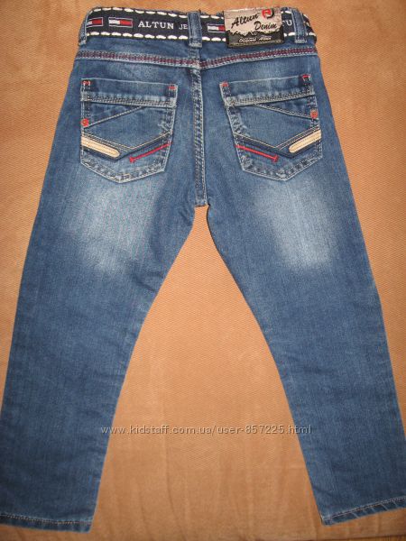 Джинсы "ALTUN" (Турция) отличного качества на 5 лет. На поясе с внутренний стороны есть резинка-утяжка на пуговичке. Также в комплекте идёт ремень. Замеры: длина общая - 64 см, шаговая - 46 см, ПОТ - 28 см (можно уменьшить с помощью утяжки), посадка спереди - 20 см, сзади - 25 см, ширина внизу - 13 см.Условия доставки: