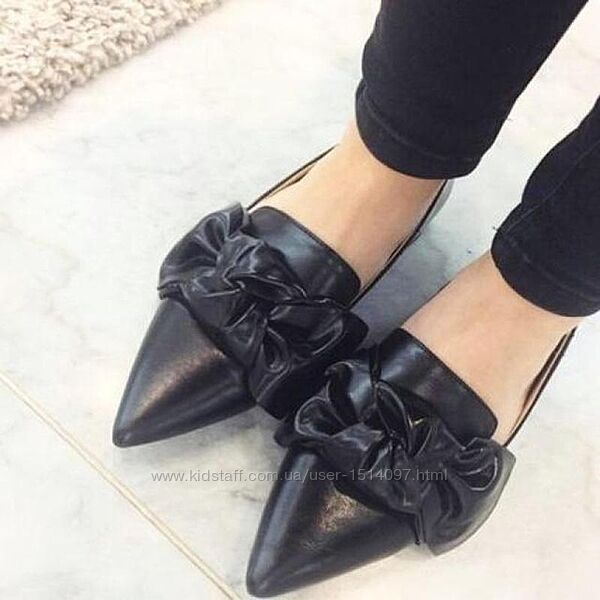 Подробное описание: Новые черные лоферы с бантом туфли балетки с острым носком на низком ходу