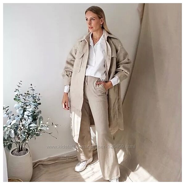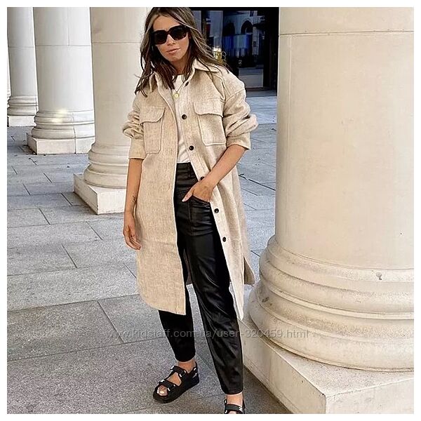Шерстяное бежевое пальто рубашка h&m