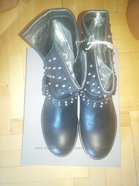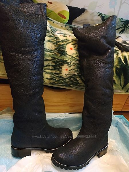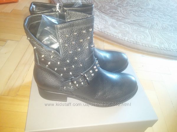 Натуральная кожа снаружи и внутри,сделаны в Италии.Очень стильные,удобные и качественные,толстая рифленая подошва,украшены шипами.Начальная цена была почти 300 дол.-купила со скидкой для себя-но не подошел размер-39 размер полномерный-по стельке примерно 26 см.2350 грн.Шикарные брендовые зимние на меху итальянские сапоги-ботфордыСапоги известного американского бренда Ross & Snow.изготовлены в Италии.на натуральном меху из Исландии. верх натуральная кожа со специальной водостойкой необычной лазерной обработкой.стельки кожаная-Эксклюзив. врядли где то еще увидите.куплены для себя но не подошли-полномерная 39 и не на худые ноги.Новые в фирменной коробке. с бирками и пыльником.цена без скидки была 600 или 800 дол. 6000 грн.