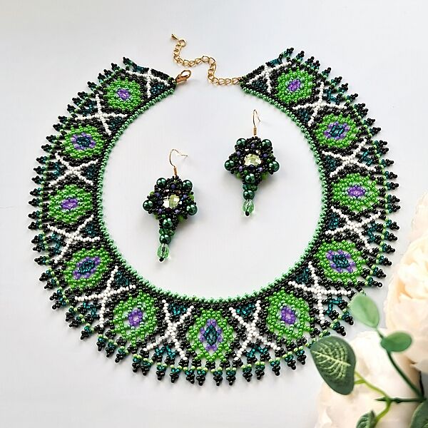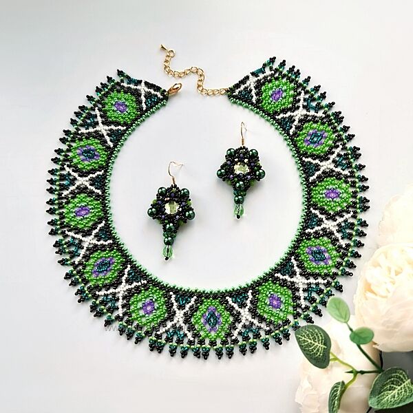 Набір прикрас Королівський зелений зелене кольє силянка та сережки