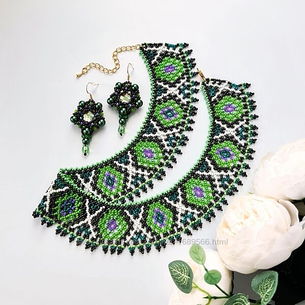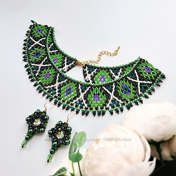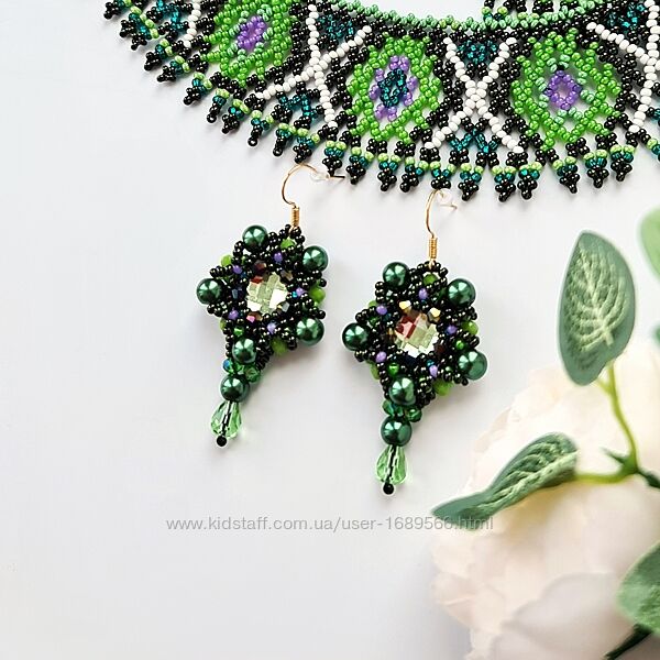 Подробное описание: Набір прикрас Королівський зелений зелене кольє силянка та сережки