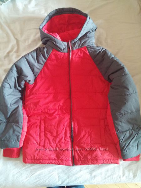 Очень удобная, качественная куртка на осень-застежка под горло, капюшон, рукава с вязанными манжетами.На синтепоне+ утеплена флисом, в капюшоне и карманах тоже флис-очень мягко и приятно.Цвет красный с серым.Размер указан 10-12 лет , рост 135-153 см.Замеры:длина по спинке-59, рукав внеш. до горловины-64, внутр.- 45,по груди-45 см.
