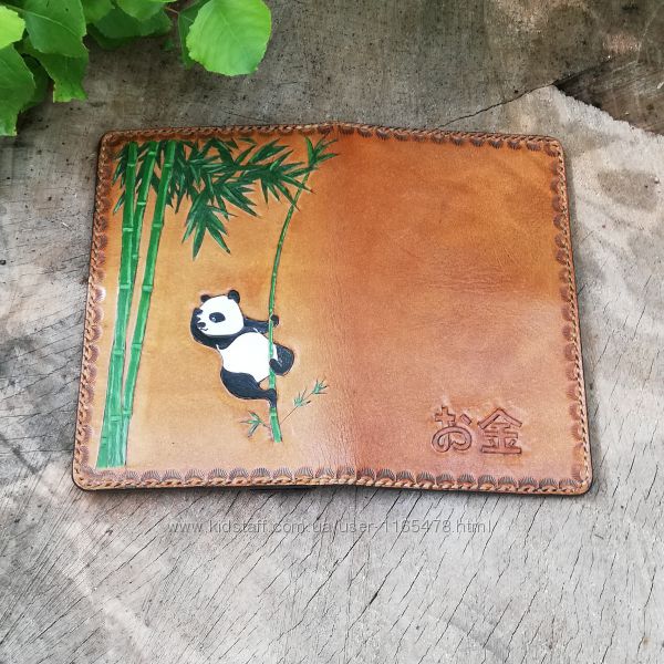 Авторский кошелек ручной работы из натуральной итальянской кожи растительного дубления. С одной стороне - тиснение в виде японских иероглифов (переводится символично - "деньги"), с другой - тиснение и рисунок акриловыми красками, выполненный вручную. Симпатичная панда, которая смотрит на бамбуковые деревья - лишь один из вариантов рисунка, который может быть выполнен. Не ограничивайте свою фантазию - все идеи обсудим и воплотим в жизнь!Кошелек-портмоне прошито прошито вручную вощеной нитью, которая придает изделию завершенный вид. Портмоне вместительное, но не превышает размеров стандартного женского кошелька. Стильно смотрится в жизни и позволяет хранить самое необходимое: купюры, банковские карты, чеки и т. п.