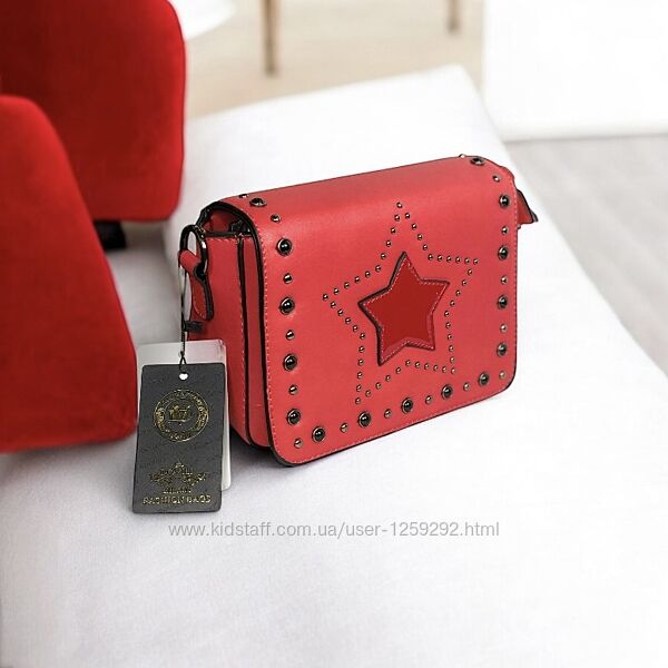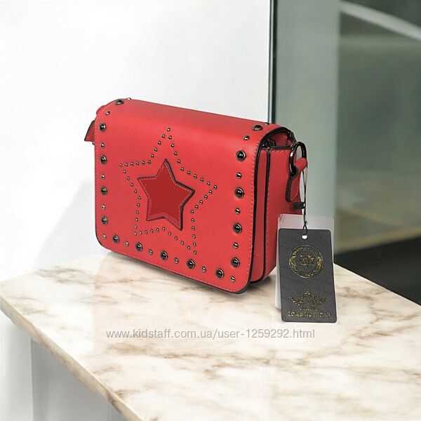 Сумка кроссбоди,италия,со звездой -ярко-кораллово- красная Материал: Кожзам Размеры: Высота 16 см, ширина 21 см, дно 8 см Длинная ручка: Есть (регулируемая) Цвет фурнитуры: Черный Отделения: Одно Внешние карманы: Есть Больше аксессуаров,обуви здесь https://www.kidstaff.com.ua/user-anno-1259292 Весь товар в наличии!Отправка в день/след.день после оплаты.