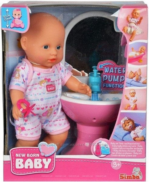 Пупс от компании Simba приведёт в восторг любого ребенка. Пупс выполнен в виде пухлого младенца с открытым взглядом, поэтому о нём хочется заботиться: переодевать, кормить, укладывать спать и сажать на горшок. Пупс реалистично пьёт и писает.