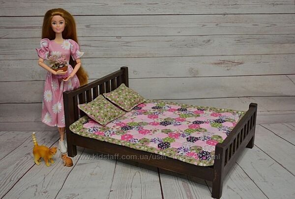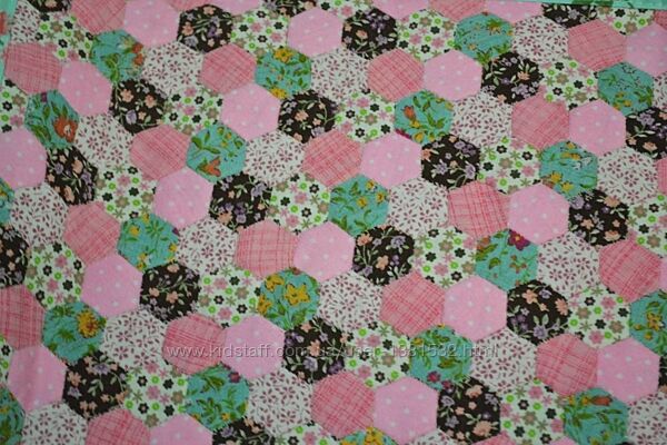 Лялькова ковдра пошита в техніці печворк із клаптиків тканини Ручна робота Розмір шестигранника 2,5см Набір : Ковдра + 2подушки На ліжко до 32см 100% бавовна