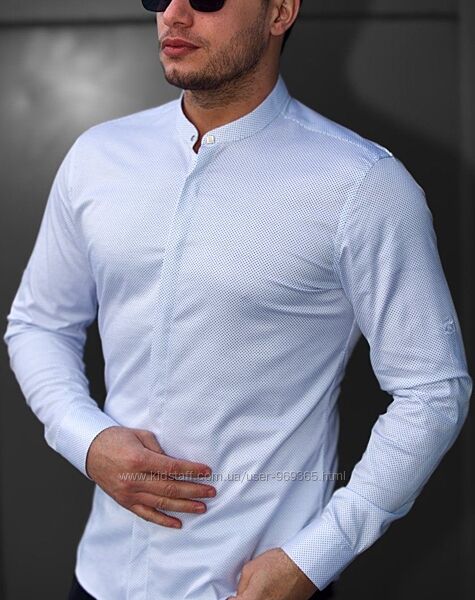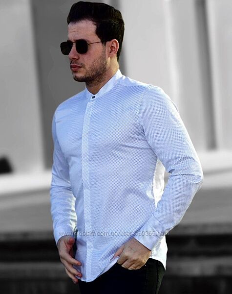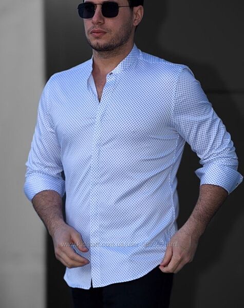Подробное описание: Белые мужские рубашки с принтом и воротником стойкой. ТМ Rubaska