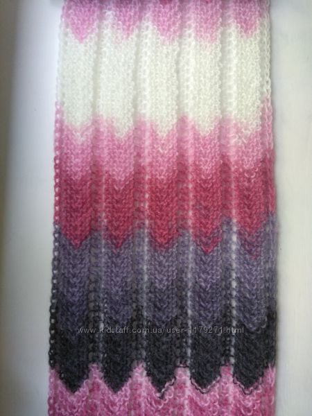 Комплект: шапка + шарф. Ручная работа. Связан в одном экземпляре. Легкий, мягкий, комфортный, теплый, слегка пушистый. Подойдет для сезонов: осень, весна, так как шапочка тонкая. А шарф можно носить и зимой.Красивый зигзагообразный узор шарфа хорошо смотрится и с лицевой и с изнаночной стороны. Его можно обернуть один раз вокруг шеи, красиво драпируется, мягко укутывает шею. Размеры: длина - 146 см, ширина - 22 см.