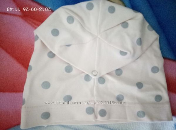 Шапка с бантом, горох-трикотаж,цвет-кремовый,Польша,р.50-52. Б\У.