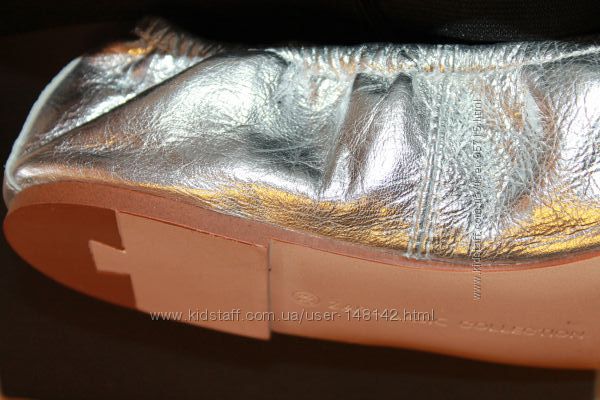 Подробное описание: Кожаные балетки ZARA Зара Серебристые 22, 8 см