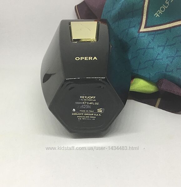 Xerjoff Opera EDP. Це парфум для жінок та чоловіків, належить до групи ароматів Деревні Квіткові Мускусні, був випущений в 2019. Парфумер: Chris Maurice. Верхні ноти: Фрукти і Турецька Троянда; ноти серця: Іланг-Іланг, Мускатний Горіх, Шкіра і Амбра; ноти бази: Ваніль, Пачулі, Мускус, Кедр з Вірджинії і Гаїтянський Ветивер. Насичене, стійке звучання. При цьому немає нічого «сверблячого», їдкого) По 80 грн за 1 мл