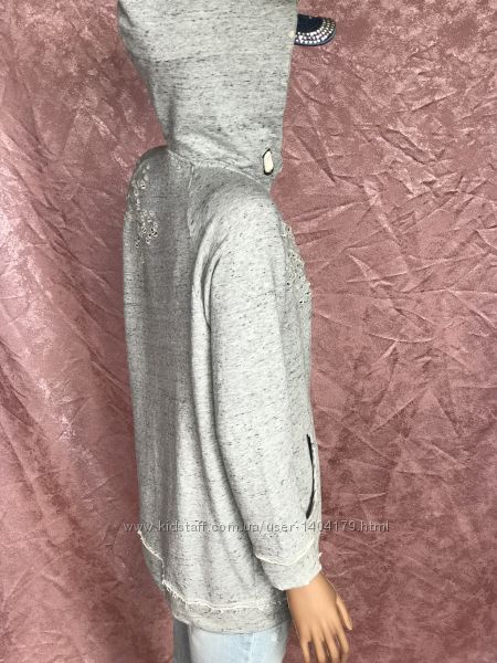 Grey свитшот толстовка кофта c капюшоном ZARA Girls Серый свитшот с эффектами порватости. Рукава-реглан.Махровая изнанка. Карманы-кенгуру спереди.