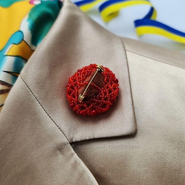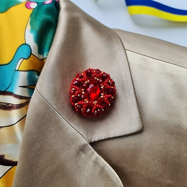 Подробное описание: Червона кругла брошка з бісеру з австрійськимкристалом ручна робота