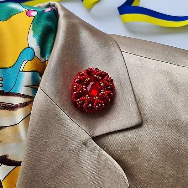 Червона кругла брошка з бісеру з австрійськимкристалом ручна робота.Актуальна, стильна прикраса для будь-якого образу, якадодасть пікантності та чарівності вашому вигляду! Ця брошка поєднує в собі