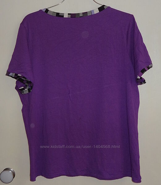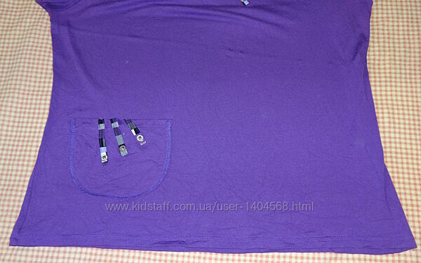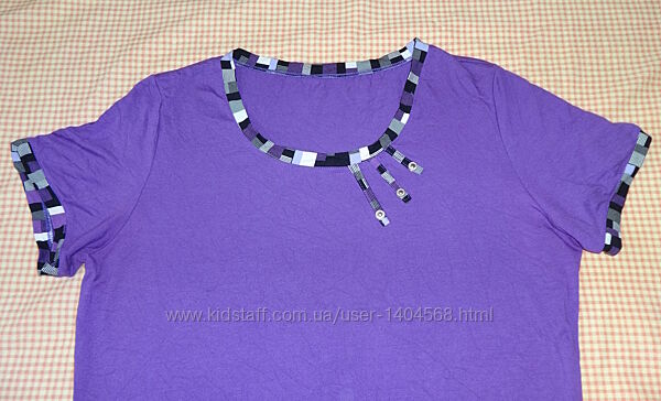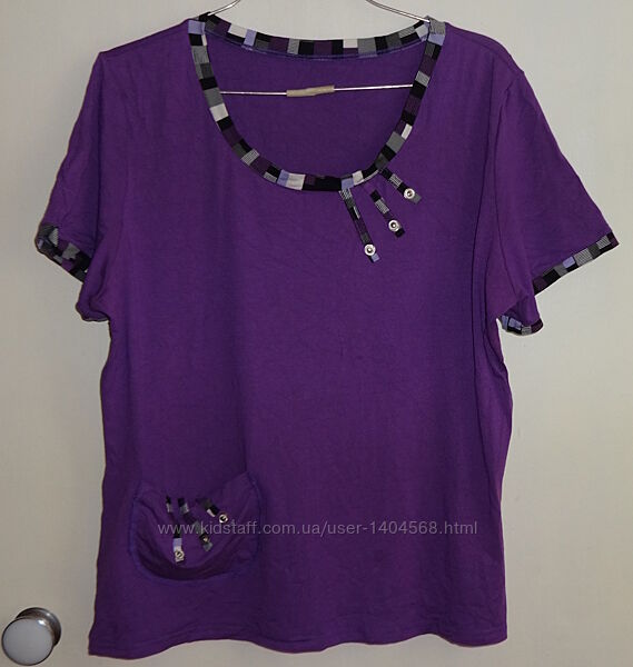 Трикотажная блузка с коротким рукавом, Размер 52-54.Прямой силуэт, горловина и карман украшены декором.