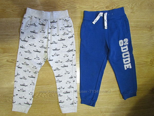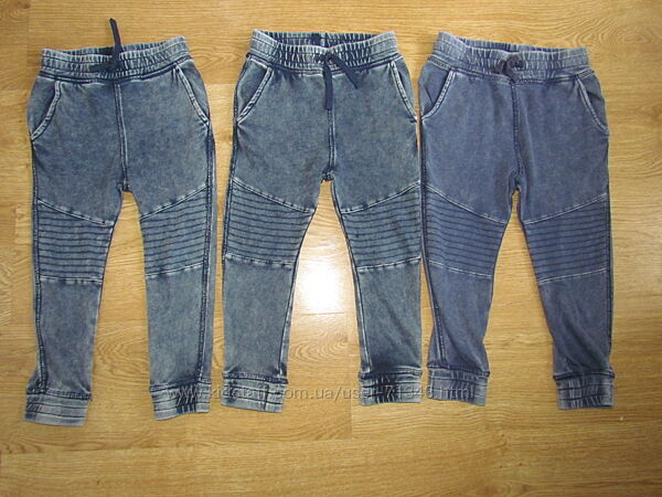 Джогеры НМ 3-4г одинаковые Длина- 59-59,5см, шаговый- 39,5см, ширина в пояске(т.е. полуобхват)-24,5-25см, одни 180грн, на других на коленке одна строчка стала распускаться 130грн