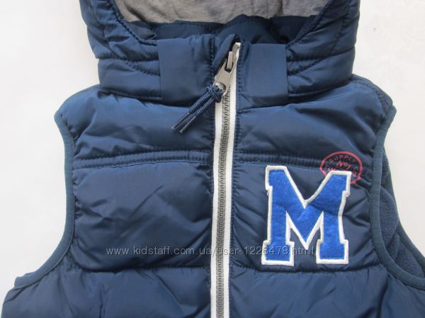 Жилет демисезонный тёплый h&m. Мальчику. Подкладка - флис. Капюшон отстёгивается. Указан рост - 110 см. Но маломерит. Подойдёт на рост 98 - 104 см. На 4-5 лет. Есть защита на молнии. Замеры: Плечи - 28,0 см. ПО под мышками - 36 см. Длина - 40 см.Высылаю Новой Почтой и Укрпочтой. Наложенный платёж есть.