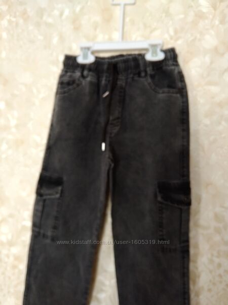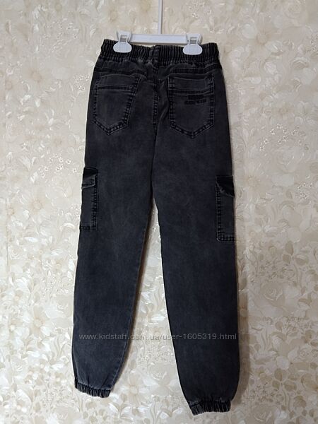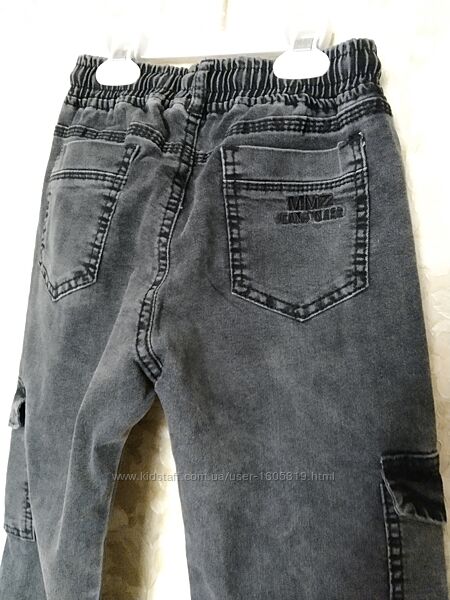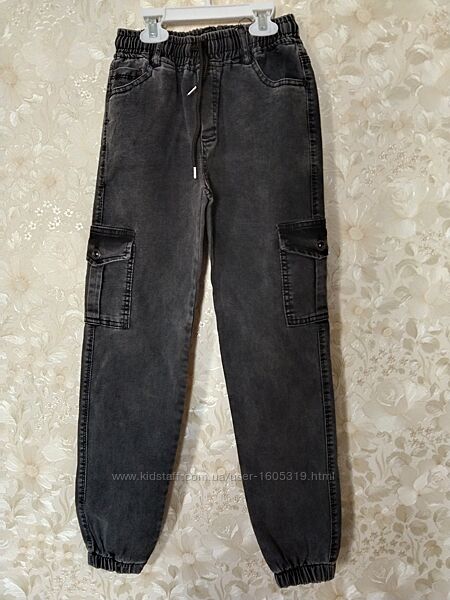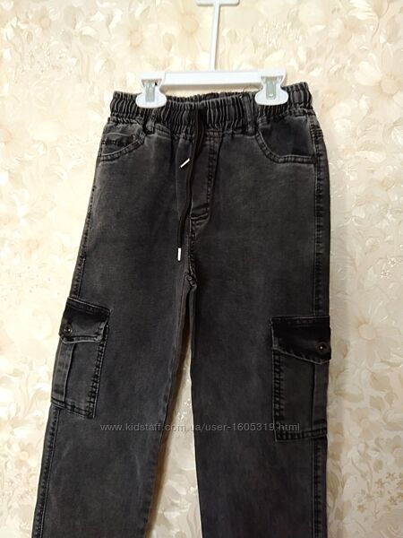 Джинси підліткові для хлопчика стрейчеві знизу і зверху на гумках 8-12 років, сірого кольору.Розміри: 128 134 140 146 152