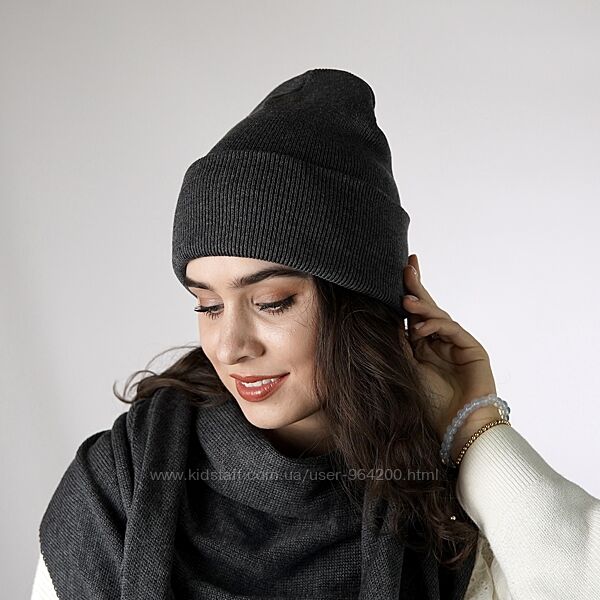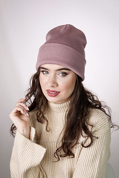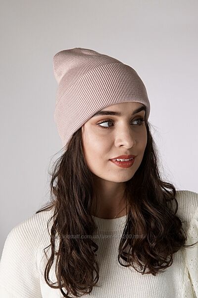 Шапочка подвійна, без підкладки, машинна в’язка в рубчик, м’яка, не "кусається", еластична, акуратна макушка, відворот не пришитий (можна відрегулювати як подобається).