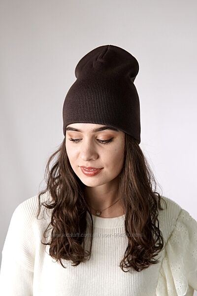 Подробное описание: Подвійна однотонна шапка без відвороту в мілкий рубчик, є кольори