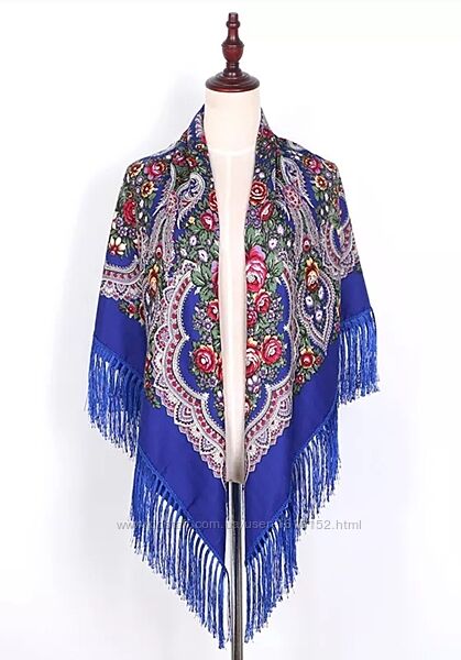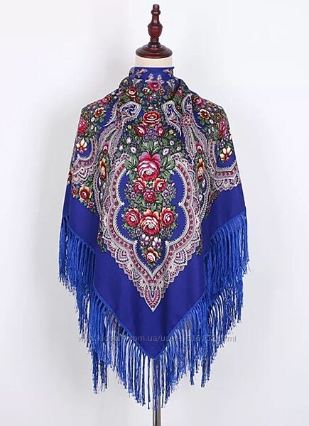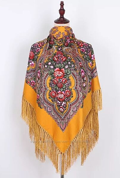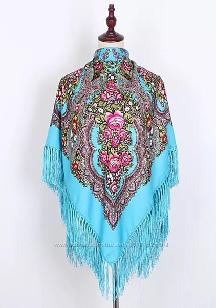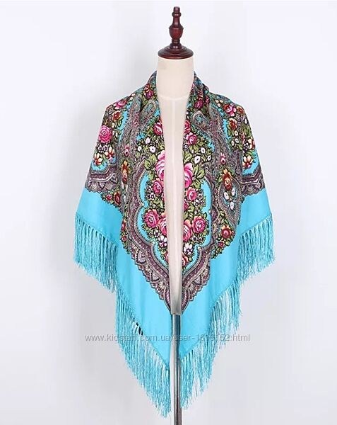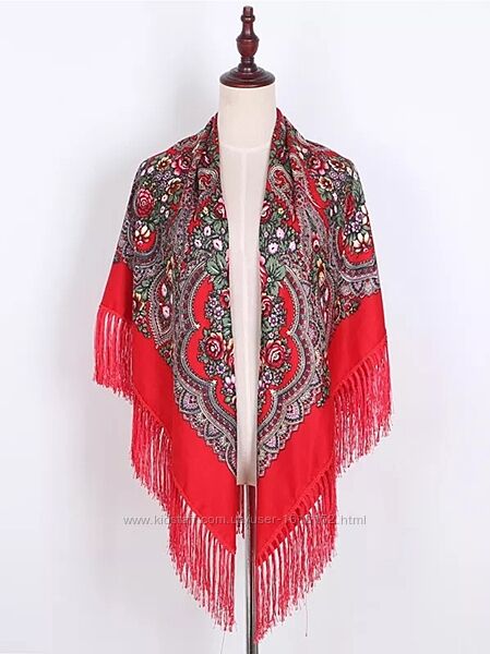Платок в национальном стиле с красивым цветочным узором.Размер: 115х115 см + бахрома с каждой стороны по 13 см.