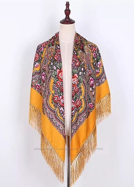 Подробное описание: Красивый Платок Шаль В Народном Стиле. Национальный Платок С Бахромой