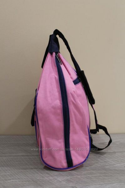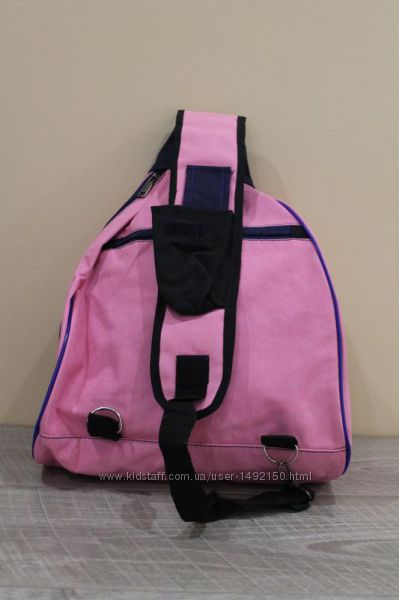 Рюкзак. Плотная ткань, имеет 1 большое отделение на молнии. 2 кармана спереди(1 на молнии, 1 на липучке ). Одна цельная лямка. Есть ручка для носки в руке. Размеры:Длинна 30 см