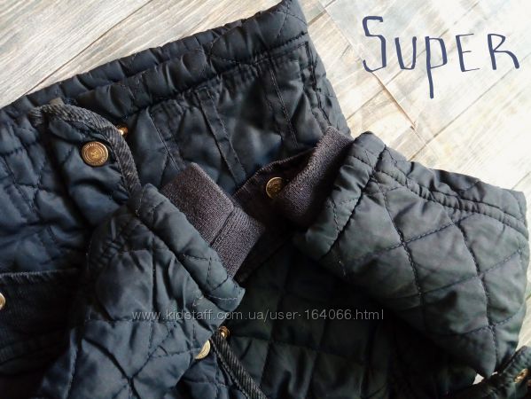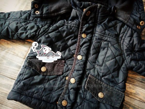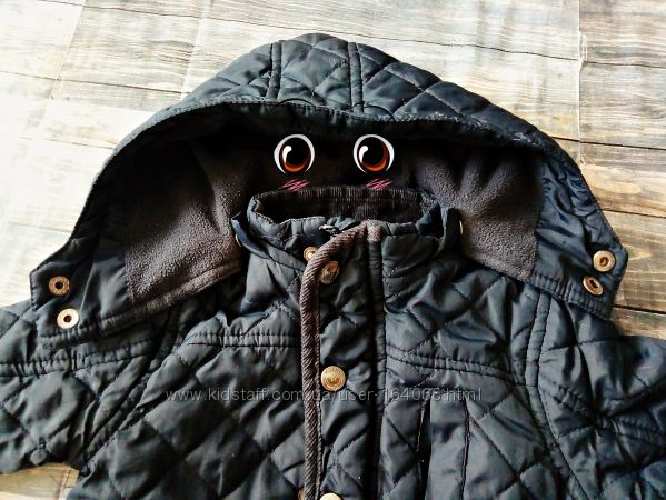 Стеганная деми курточка в хорошем состоянии подойдет на малыша до 2 лех.Написано возраст 12-18,мы носили до 2,5 лет при росте 88см.Капюшон застегивается на кнопки.