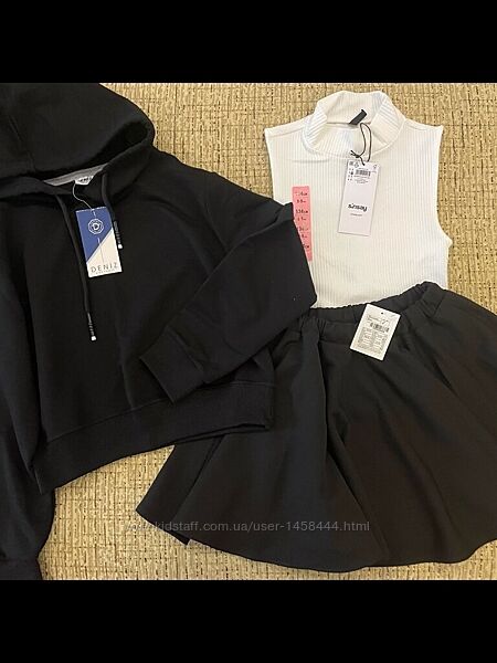 Худі топ укорочений довжина 43 см рукав від шиї 57 см від плеча 46 см ширина 43 см вказано розмір 146 але маломірить найкраще на 128 розмір тоді лежить як зараз модно трикотаж двунитка Спідниця плісіровка розмір 128 Довжина 32,5 см на широкій резинці ПОТ 25 см тягнеться до 30 сммайка ширина 26 см тягнеться до 32 см довжина 41 см в рубчик на худеньку дівчинку