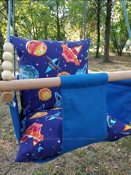 Подушечки - двойная ткань, 100% хлопок, наполнитель гипоаллергенный холлофайбер отличного качества.В зависимости от цвета подушек качели будут милыми или яркими,кому какие нравятся