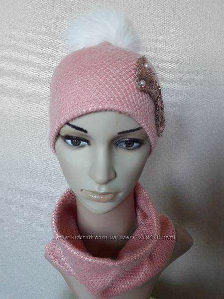 Подробное описание: Красивый, яркий, уютный ангоровый комплектшапка с помпоном и бафф, на флис
