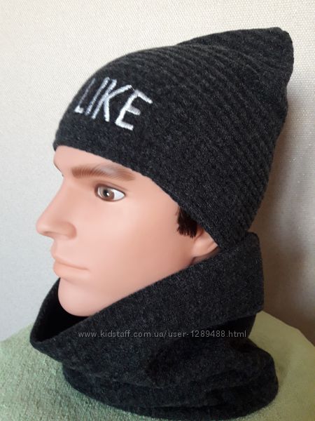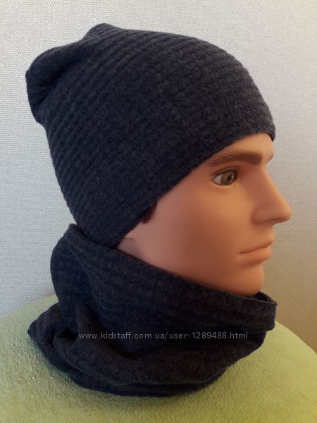 Подробное описание: Трикотажный полушерстяной комплект для мальчикашапка и бафф, на флисе