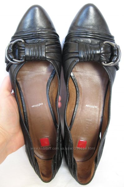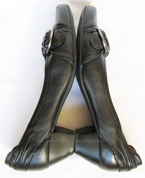 716. Очень-очень мягкие (кожа, как лайковая по мягкости) туфли известного австрийского бренда "HOGL" в очень хорошем состоянии: родные набойки без износа, чистая стелька, без посторонних запахов Линия "soft line ": В туфлях Högl в передней части стельки Softline используется специальная подушечка из пены. Гибкие подошвы и комфортные колодки не жмут и обеспечивают мягкость и плавность хода.Материал верха - натуральная кожа черного цвета, мягкая и эластичная, очень красиво декорирован носок складками и металлической фурнитурой