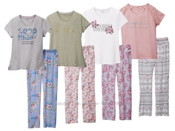 Немецкое качество! Красивая пижама/домашний костюм из немецкого магазина Lidl. Мягкая и очень приятная к телу.Состав: футболка - 98% хлопок, 2% вискоза (или 100% хлопок), штаны - 100% вискоза