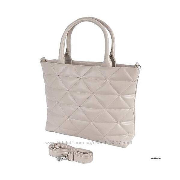 Модель виготовляється з високоякісного шкірозамінника та надійної фурнітури. На задній зовнішній стінці зручно розташована врізна кишеня на застібці. Дві короткі ручки дозволяють носити сумку в руці та біля ліктя. Весь виріб зачиняється на блискавку.