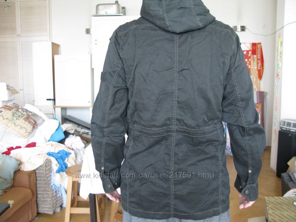 Фирменная куртка Kenvelo из плотного чистого хлопка без подкладки хорошего качества .Капюшон отстёгивается. в наличии M.L.XLзамеры м грудь 52см плечи 46см рукав 70см длина по спине от воротника 80см